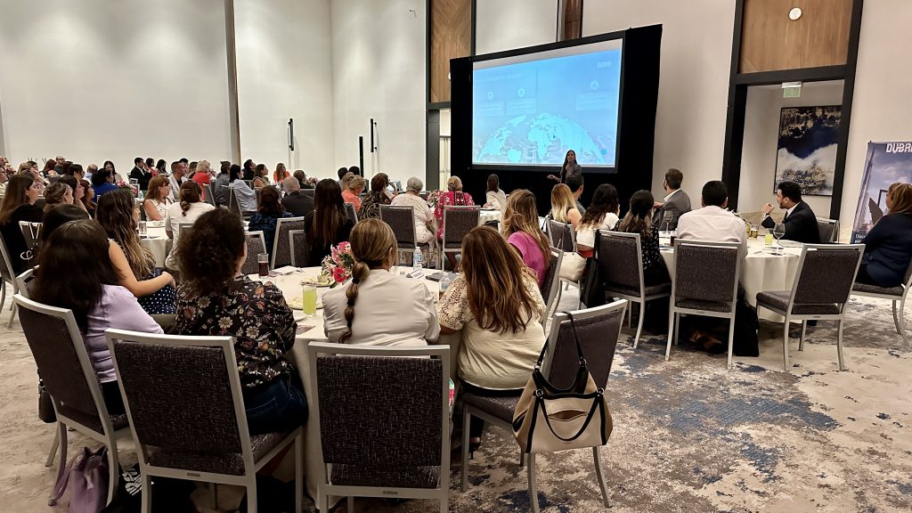 La línea aérea Emirates, estuvo presente a través de David Rodríguez, de Emirates en MTY, quien mostró la conectividad que tienen hasta Dubái, ya sea a través de la CDMX, o desde Houston donde cuentan con un convenio con United.