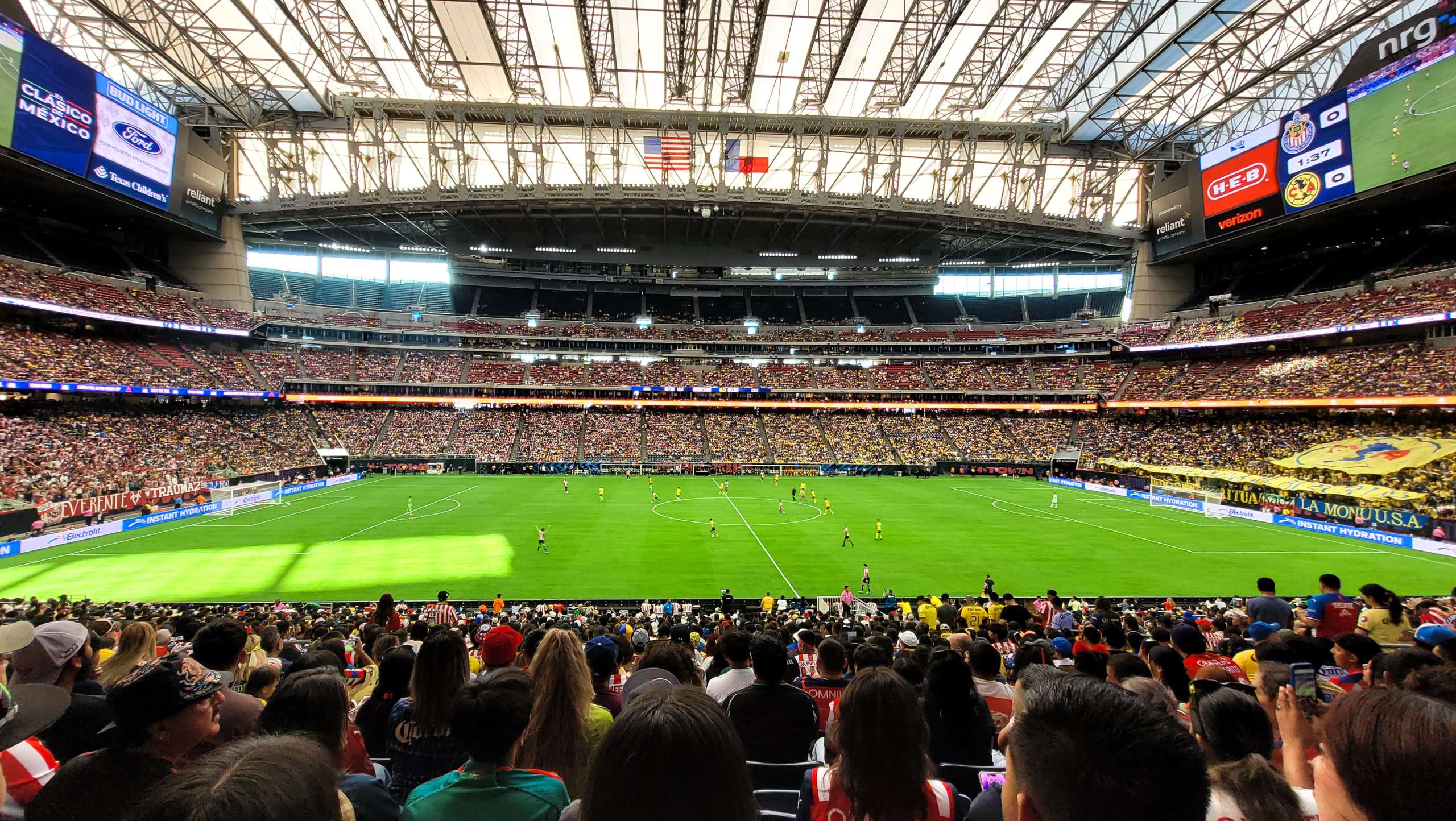 Luego nos dirigimos al NRG Stadium: Hogar de los Houston Texans, sede también de importantes eventos deportivos y conciertos. En esta ocasión, fue el escenario del emocionante partido amistoso entre Chivas y América, un evento que atrae a aficionados de todo Estados Unidos, México y más allá.