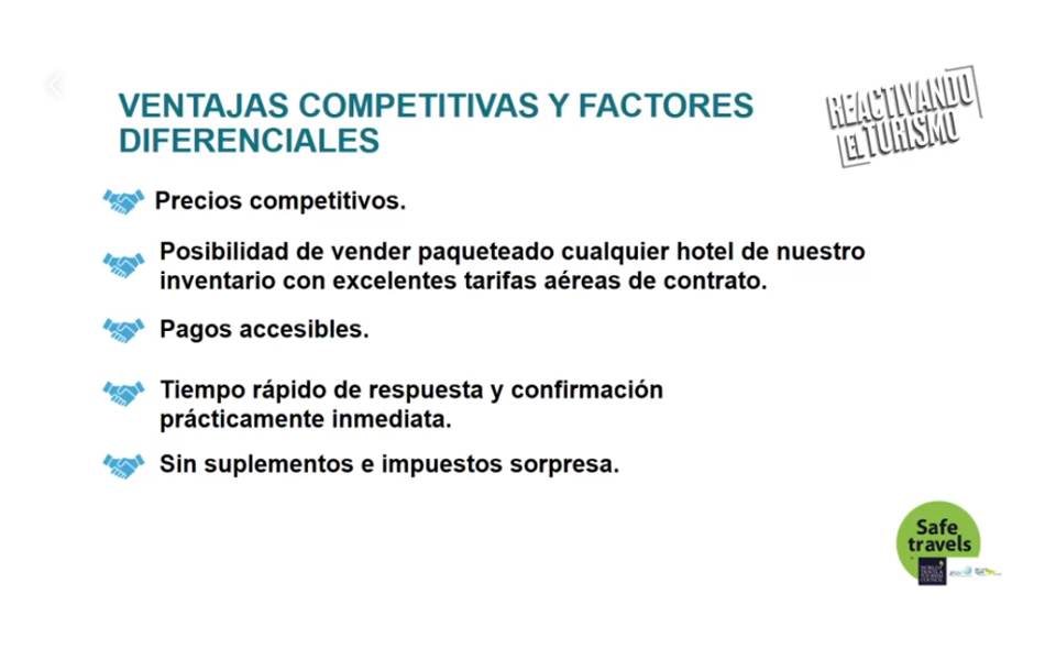 «Yo les pido que nos abran los brazos al turismo nacional, confíen en nosotros, en los destinos de playa, que van a recibir un buen producto, un producto que está muy bien armado, con alianzas con las mejores cadenas de hoteles, alianzas con las mejores aerolíneas y que tenemos la garantía de 15 años que no le hemos fallado a nadie, y es por eso que tenemos estas garantías, estos proveedores, están comprometidos con nosotros, como nosotros estamos comprometidos con ellos», dijo Diego Ontañón.